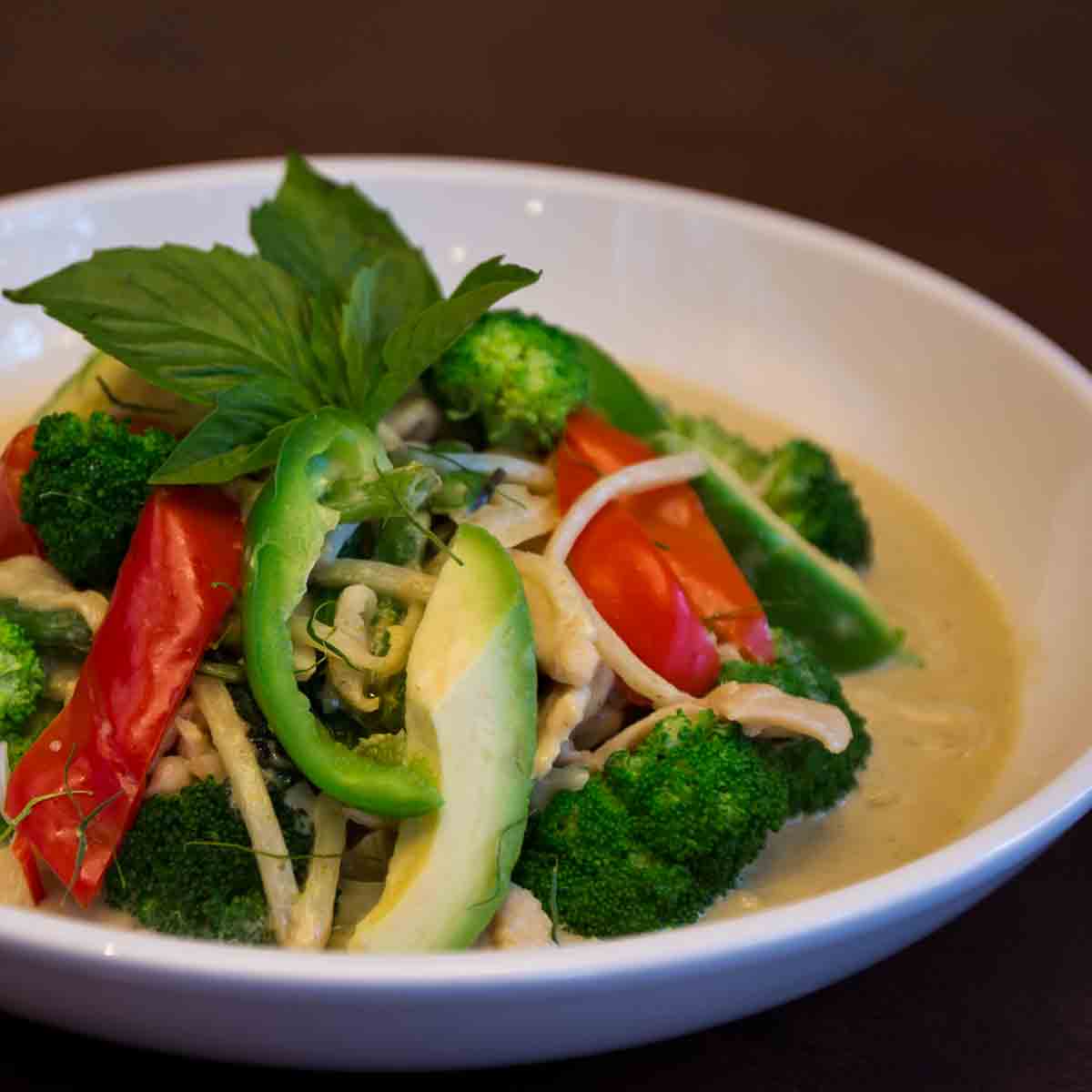- Red curry, peas, carrot, mushrooms, broccoli, cabbage